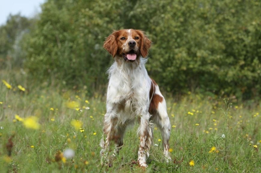 Бретонский эпаньол – это французская легавая, одна из самых популярных охотничьих пород в Европе и Америке. Обладает высоким интеллектом и отличным нюхом. Щенки начинают охотиться с 4 месяцев.
