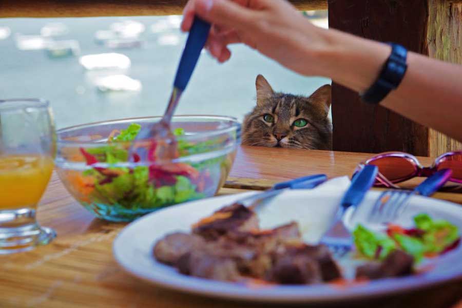 Многие владельцы котов жалуются на воровство своих пушистых друзей. Если у питомца сформировалась привычка лакомиться остатками пищи, нужно отучить кошку запрыгивать на стол, избавившись от предметов вожделения. К примеру, еду можно убирать в холодильник или шкаф кухонного гарнитура. Большинство человеческих яств непригодны для животных из-за добавления приправ и специй.