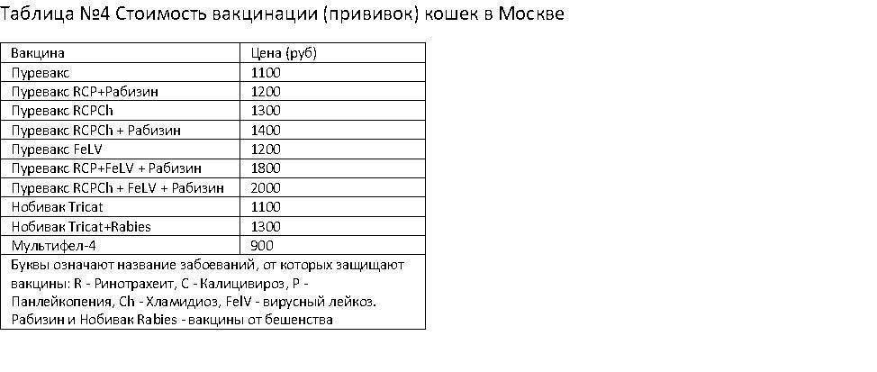 - из стоимости самого распространённого комплекса препаратов: Пуревакс RCPCh + Рабизин + Нобивак Rabies;