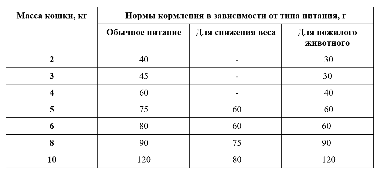 Котятам скармливают сухую пищу с пятинедельного возраста. Можно начинать приучения раньше, с учетом того, что у них молочные зубы, которые не способны разгрызать твердые корма. Поэтому гранулки разводят теплой водой. Ориентировочной нормой дачи сухой пищи для детеныша старше месяца считают 60 г/кг. Потребности котенка и взрослого животного в количестве и соотношении элементов питания неодинаковы.