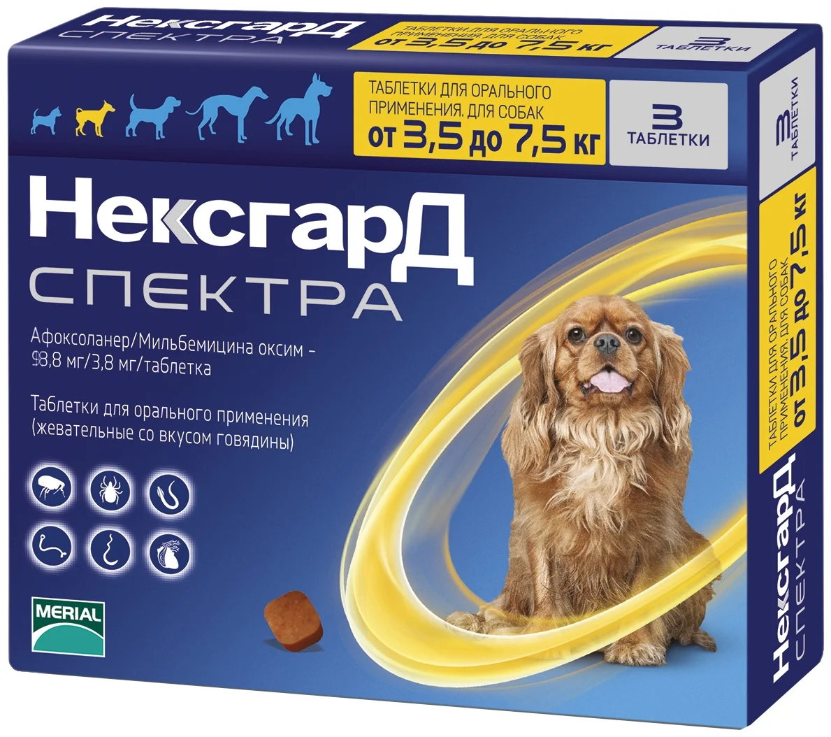 5) Таблетки от клещей «НексгарД Спектра»/ «NexGard Spectra»