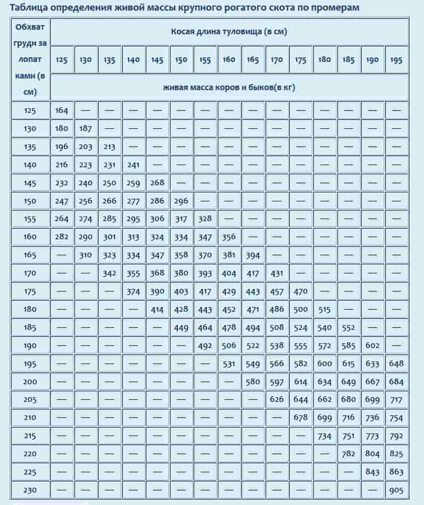 Чтобы узнать, сколько весит в 1 год живым весом бык, можно замерить самую объемную часть в области обхвата груди. Результат сравнивают с данными таблицы, причем она будет отличаться для каждой породы коров.