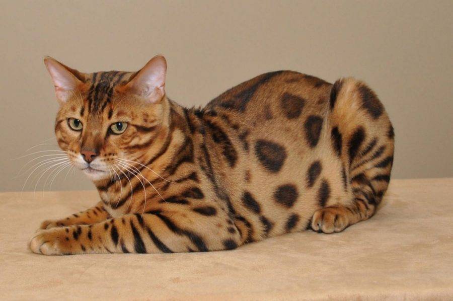 Кошка с леопардовым окрасом отличается своим величественным станом и грациозностью. Они весьма общительны, очень нежные и чуткие животные. Как ни странно, эти кошки любят принимать ванны и сидеть на плечах у хозяина.