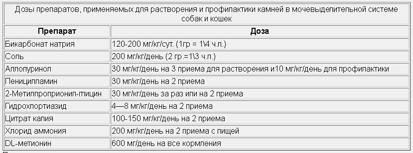 В основе курса лечения находятся лекарства, способствующие разрушению и выведению камней из мочеполовой системы. Кроме того, в зависимости от ситуации и состояния животного, наличия осложнений, могут применяться НПВП и антибиотики.