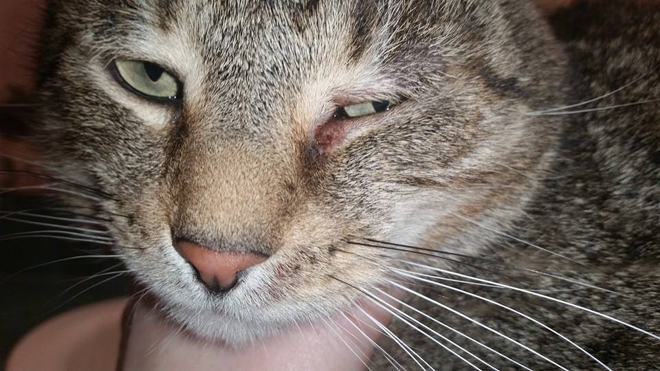 В глазу у кошки появляется маленькая опухоль, размером с горошину. Часто имеет белый или ярко-розовый цвет. Доброкачественное происхождение не дает гарантию безопасности, т. к. опухоль приводит к полному закрытию глаза.