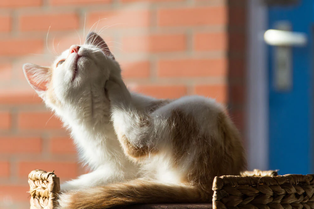 Если на кошку недавно был надет ошейник от блох и она настойчиво чешется вокруг него, то, скорее всего, животное страдает от аллергической реакции — проявилась непереносимость какого-то компонента в составе профилактического средства. Подобное часто наблюдается и после использования капель от блох — они наносятся на холку, и непереносимость будет вызывать реакцию именно в области шеи. Зуд, появившийся после введения чего-то нового в жизнь кошки, например, другого корма, шампуня или лекарства, также должен намекать на аллергию.