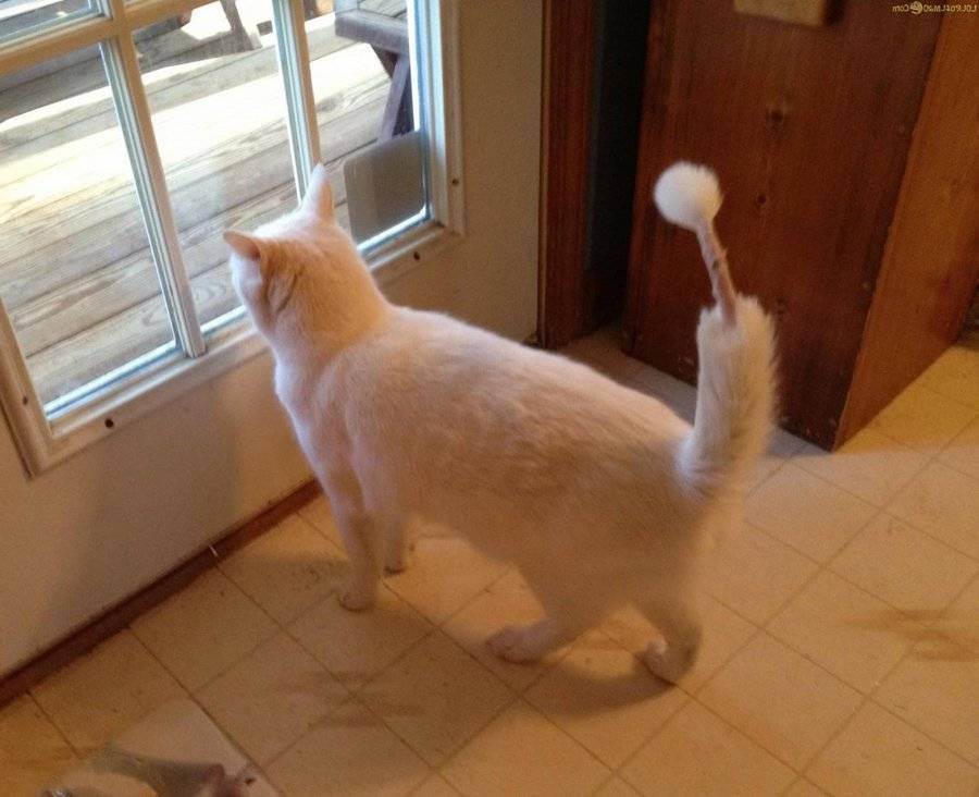 Страх — если кот чего-то боится или его многократно били и подвергали унижению, то хвост будет опушен, а его основание будет болеть