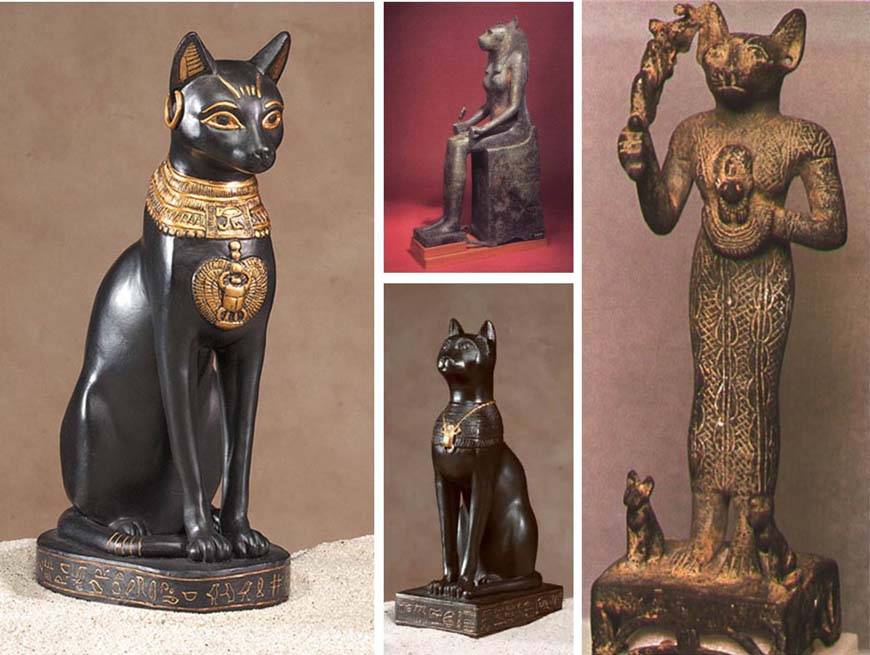Известно, что у древних египтян было принято изображать богиню плодородия и домашнего очага, а также веселья и радости Бастет в виде женщины с кошачьей головой или кошки. В городе Бубастис был построен храм в честь этой богини, а ее верховный жрец носил титул великого врачевателя. Бастет, как и кошка, иногда свирепела и превращалась в богиню-львицу Сехмет, отличавшуюся невероятной жестокостью, но также покровительствовавшую воинам и лекарям. Известно о пышных праздниках в честь Бастет, когда паломники съезжались в Бубастис, где пили много вина, играли на музыкальных инструментах и пели.