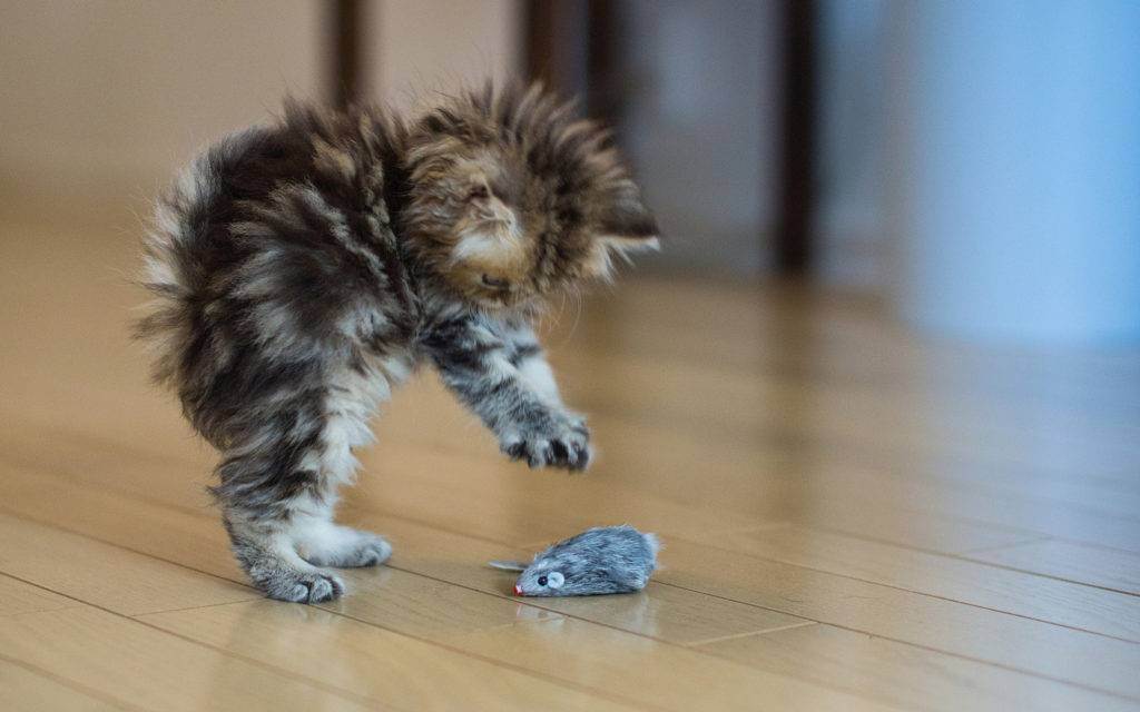 Внимание месячного котенка привлекут любые мячики, клубочки, меховые игрушки, палочки с перьями, дразнилки, издающие звук. Юный хищник с удовольствием будет охотиться за шуршащим фантиком от конфеты, клубком вязальных ниток или меховой мышкой
