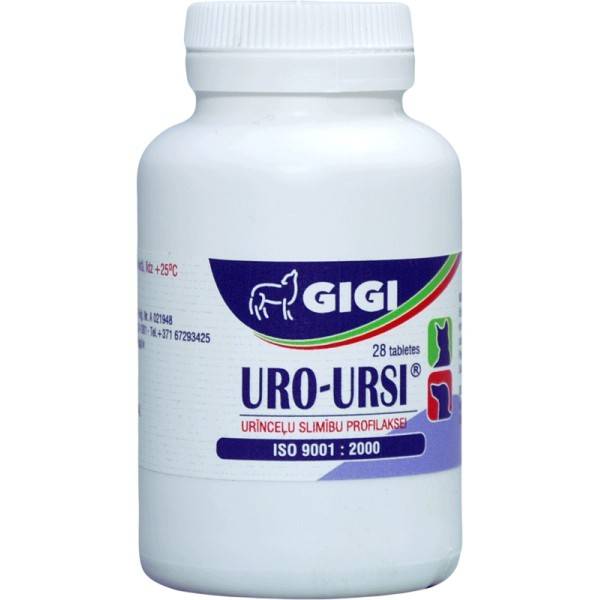 Показания Применяется как средство, понижающее уровень рН в моче, с легким мочегонным эффектом. Для вывода кристаллов из мочевых путей. Уро-Урси применяется для профилактики циститов, при комплексном лечении мочекаменной болезни собак и кошек, а так же как мочегонное и антиоксидантное средство.