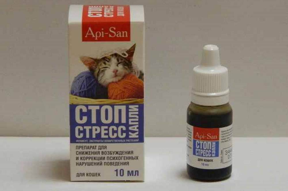 Очень эффективные успокоительные капли для кошек российского производства. Они включают в себя не только экстракты лекарственных растений (пустырник, байкальский шлемник, кошачью мяту и хмель), но и фенибут (сильное ноотропное средство). Выпускаются капли в небольших стеклянных флаконах, объемом 10 мл. Препарат улучшает мозговое кровообращение, снимает напряжение, страх и тревожность, повышает стрессоустойчивость, снижает агрессию. Кошке достаточно одной капли лекарства на килограмм веса в сутки.