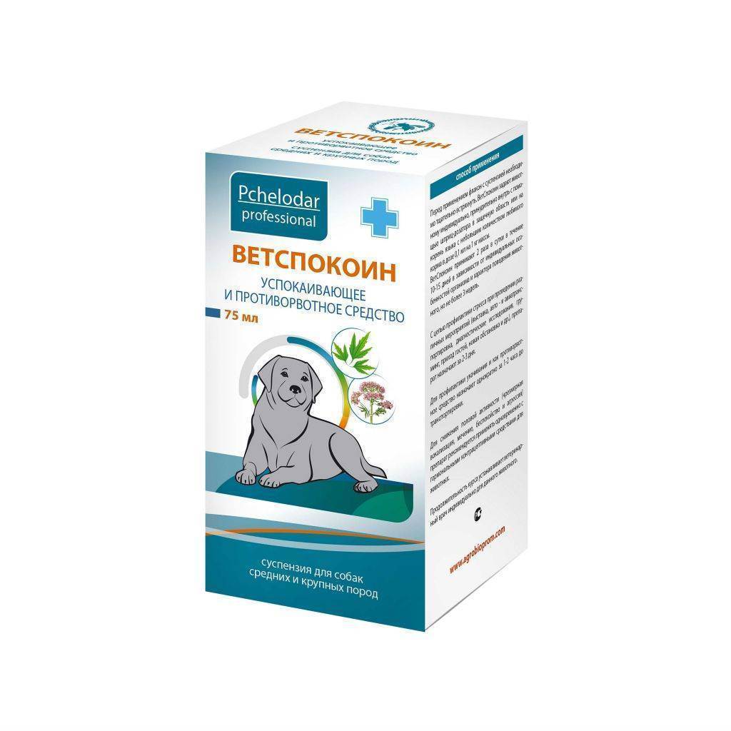 - «Ветспокоин», «Калмин» – успокоительное;