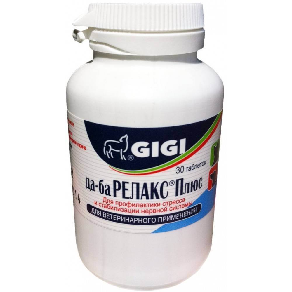 Лекарство производится латвийской фирмой GIGI, и выпускается в форме таблеток. Препарат имеет полностью натуральный состав, одна таблетка которого содержит 90 мг валерьянки, 30 мг экстракта пустырника и 20 мг мелиссы лекарственной. Relax Plus эффективно справляется с последствиями стресса, снижает уровень эмоциональной нестабильности, быстро успокаивает животное, обладает мягким спазмолитическим действием.