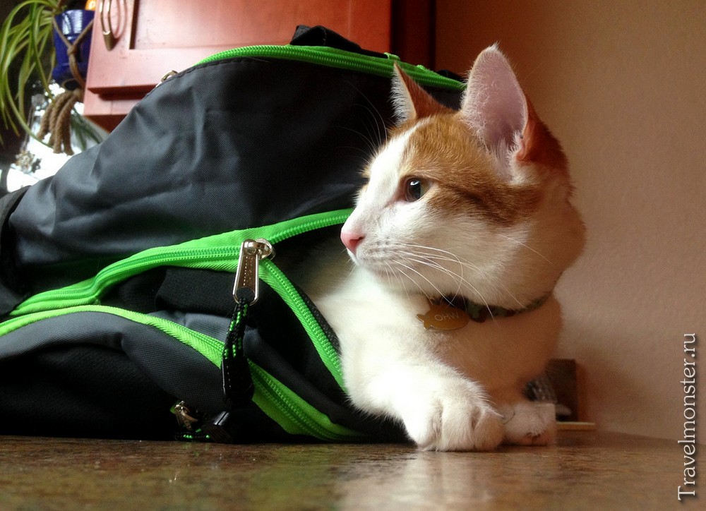Транспортировка кошки в путешествии проще, чем собаки, хотя бы потому, что с кошкой не нужно гулять на улице и они небольшого размера. Обычно бывает достаточно взять переноску, в которой ваша кошка спокойно будет сидеть. Сложнее решить проблему с туалетом, так как даже, если вы возьмете с собой кошкин лоток, не факт, что она разберется с ним в незнакомом месте и в стрессовой обстановке, которой для них является любая дорога. Корм, воду и миски также не забываем. Плюс, если животное ведет себе беспокойно, воет или отказывается сидеть в переноске, можно на некоторое время взять ее на руки и успокоить.
