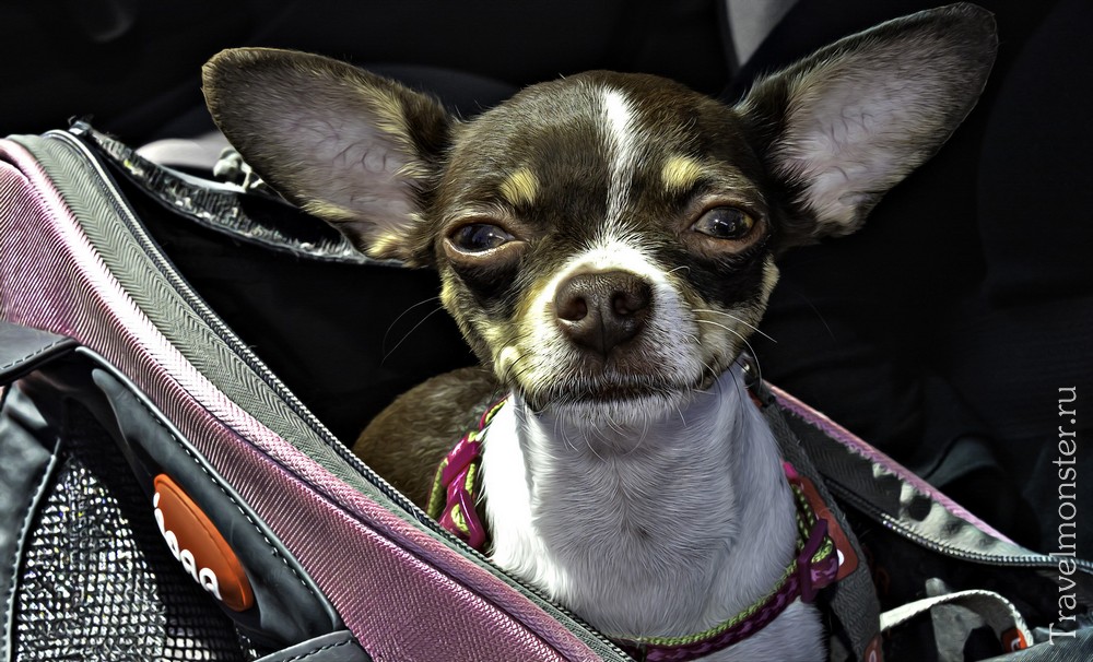 Тем, кто торопится отправиться в путь и не имеет времени обзавестись необходимыми аксессуарами, можно поместить любимца в обычную сумку и усадить на заднее сидение, либо надеть ошейник и привязать животное на поводок, слегка ограничив его пространство.