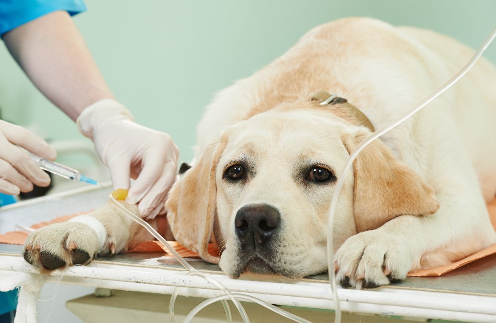 Перед усыплением ветврач осматривает собаку, подбирает инъекционный препарат