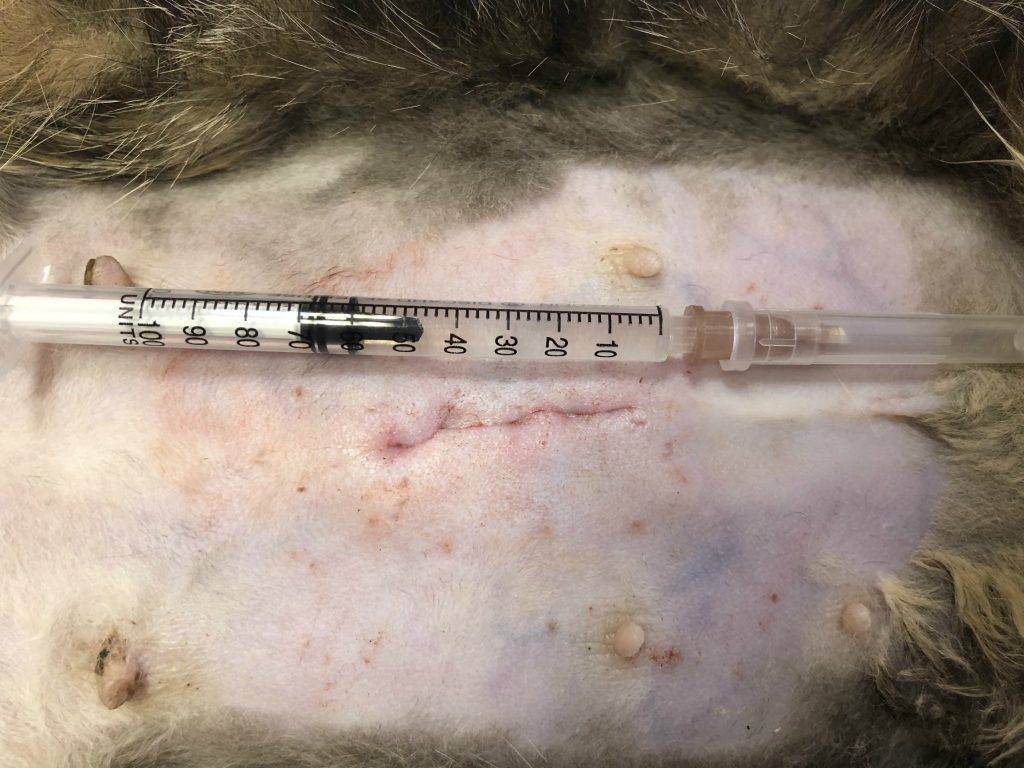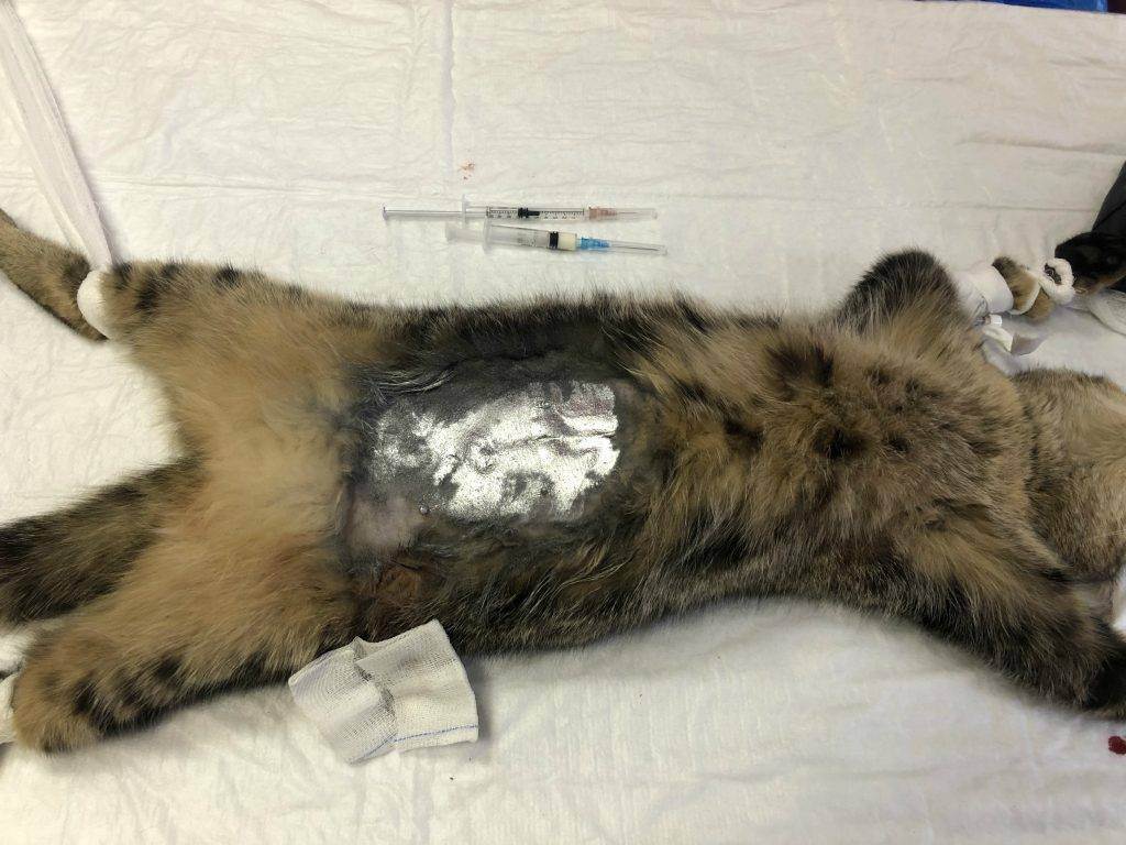 Шов после стерилизации беременной кошки