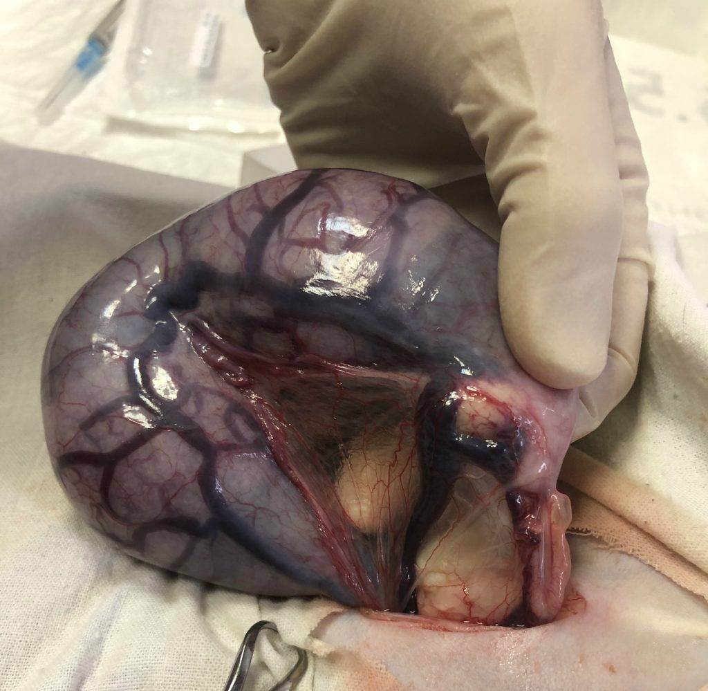 - Во время беременности возможна кастрация – удаление всех детородных и репродуктивных органов. Это объясняется увеличенной маткой, в которой увеличиваются размеры кровеносных сосудов. Подобное распространяется и на маточные трубы. В результате операции ветеринар рискует повредить яичники, спровоцировать обильную кровопотерю, поэтому специалисты берутся только за кастрацию во время беременности.