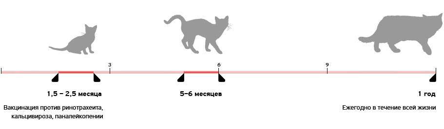 Как правило, вакцинирование предполагает определенный возраст котенка и строгие промежутки, между которыми необходимо повторять процедуру: