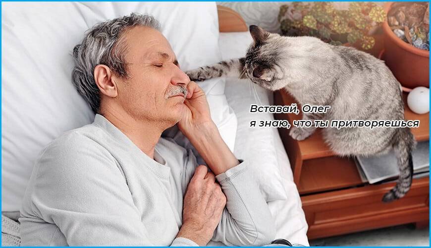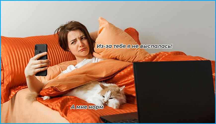 Эти хитрые создания не успокоятся пока не разбудят. Хорошо, когда животное спит спокойно рядом или молча сидит и ждет, когда хозяин проснется. Но в том, что кошка утром не дает спать, виноват и последний.
