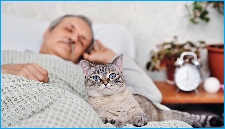 Кошки не спят так, как люди. Даже за 8-ми часовой сон, у них есть короткие периоды бодрствования. В связи с этим целесообразно не устраивать кошечку на ночь спать в хозяйской спальне. К тому же, ворочающийся во сне человек тоже может разбудить животное.