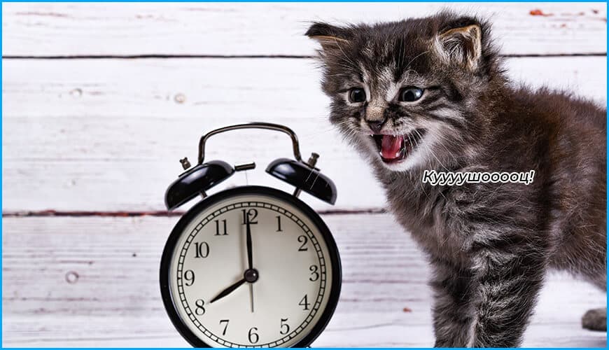 Расписание нужно нам не только для рабочего времени. Домашний режим может наладить ночной сон всех членов семьи и даже для маленького котёнка. Животное быстро привыкает к стабильному распорядку дня, какие действия следуют за какими. Таким же образом обозначается отход ко сну.