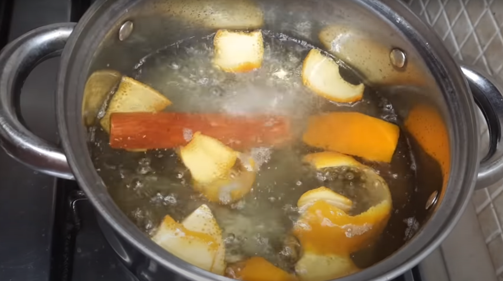Шкурки нужно добавить в воду и поставить на огонь. Когда отвар закипит, огонь убавляют до минимума и кипятят жидкость еще 15-20 минут. После этого емкость с отваром убирают с плиты и остужают до комнатной температуры. Жидкость процеживают и переливают в бутылку с пульверизатором. Используют по мере необходимости.
