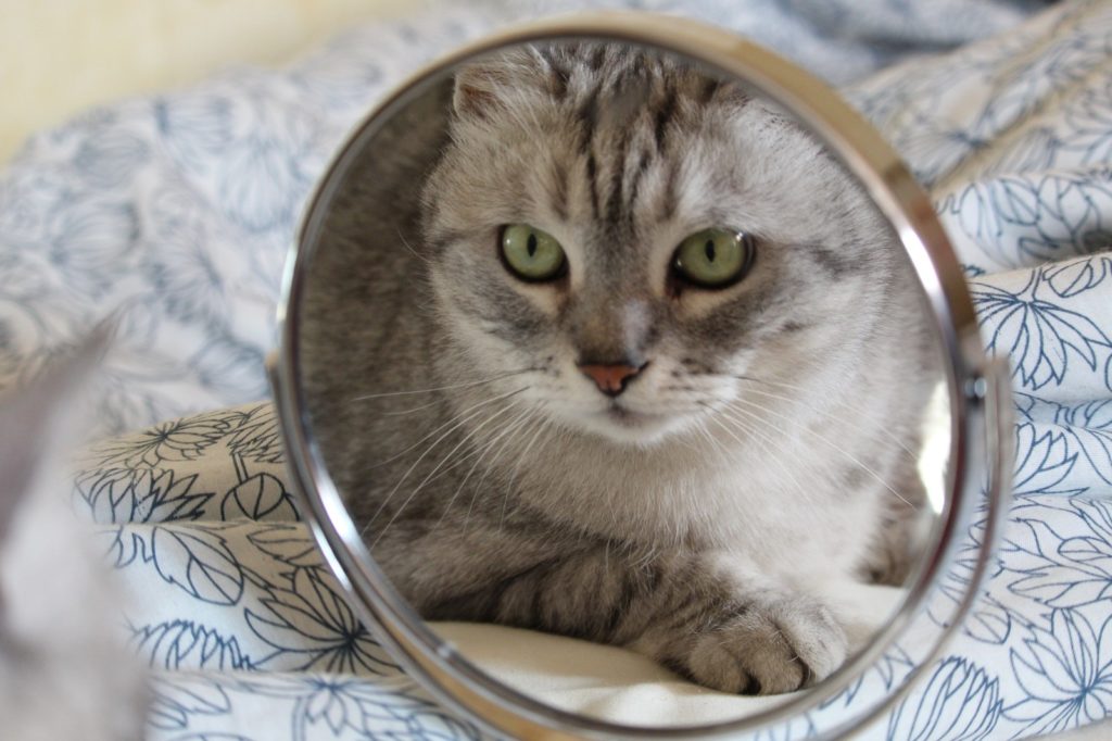 Для того, чтобы понять, узнаёт ли животное себя в отражении, учёные применяют простой тест: пачкают мордочку кота краской без запаха и ставят перед ним зеркало. Если испытуемый умывается, то тест пройден, узнавание произошло. Увы, котам это не удаётся.