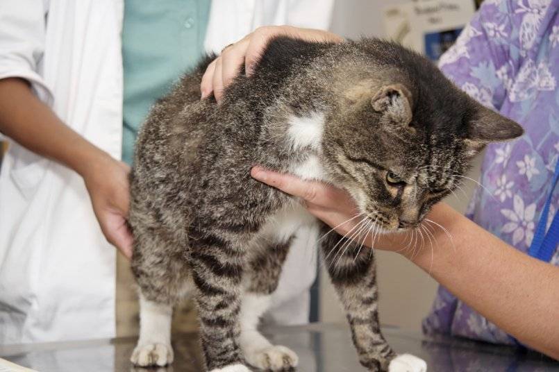 - Осмотр. Физикальное обследование, проведённое профессионалом, позволяет обнаружить скопившуюся жидкость в брюшине кошки.