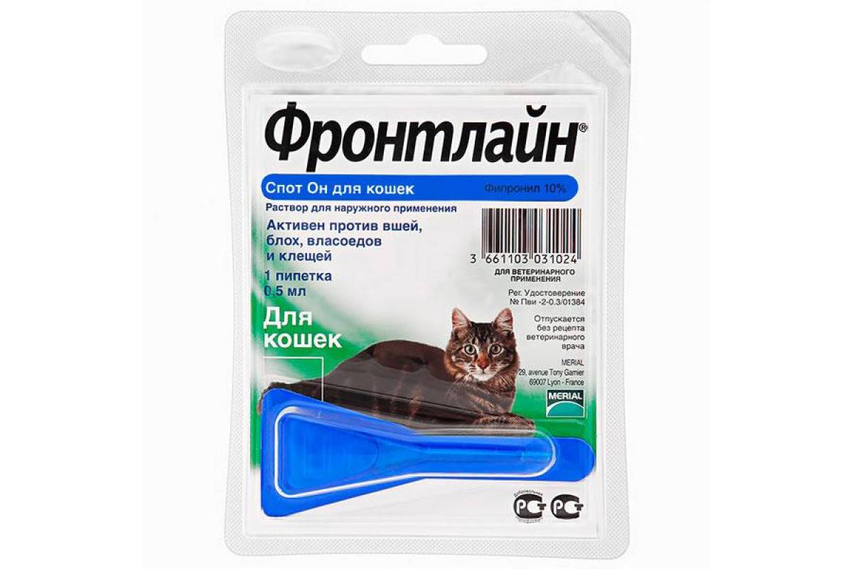 После обработки на кошку надевают ограничивающий воротник, чтобы она не вылизывала себя и не отравилась. Такие препараты производят компании «Фронтлайн», «Гринфорт», «Больфо» и др.
