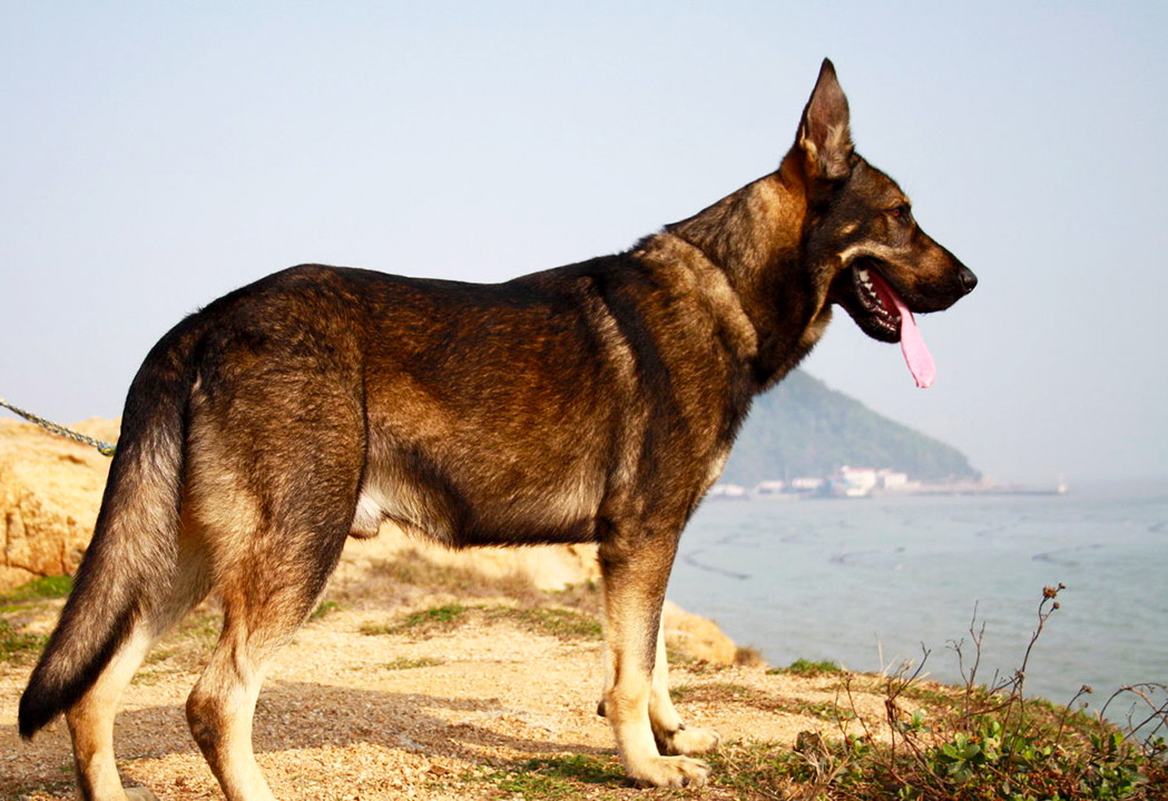 Куньминский волкособ отличается более темным окрасом и длинными ногами