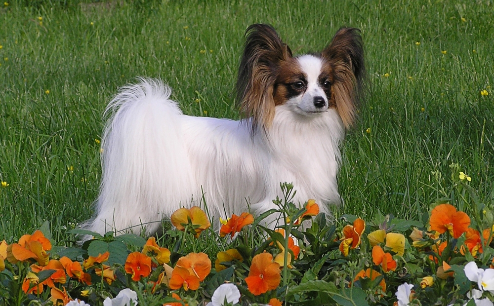 На фото видно, как выглядит собака папильон: