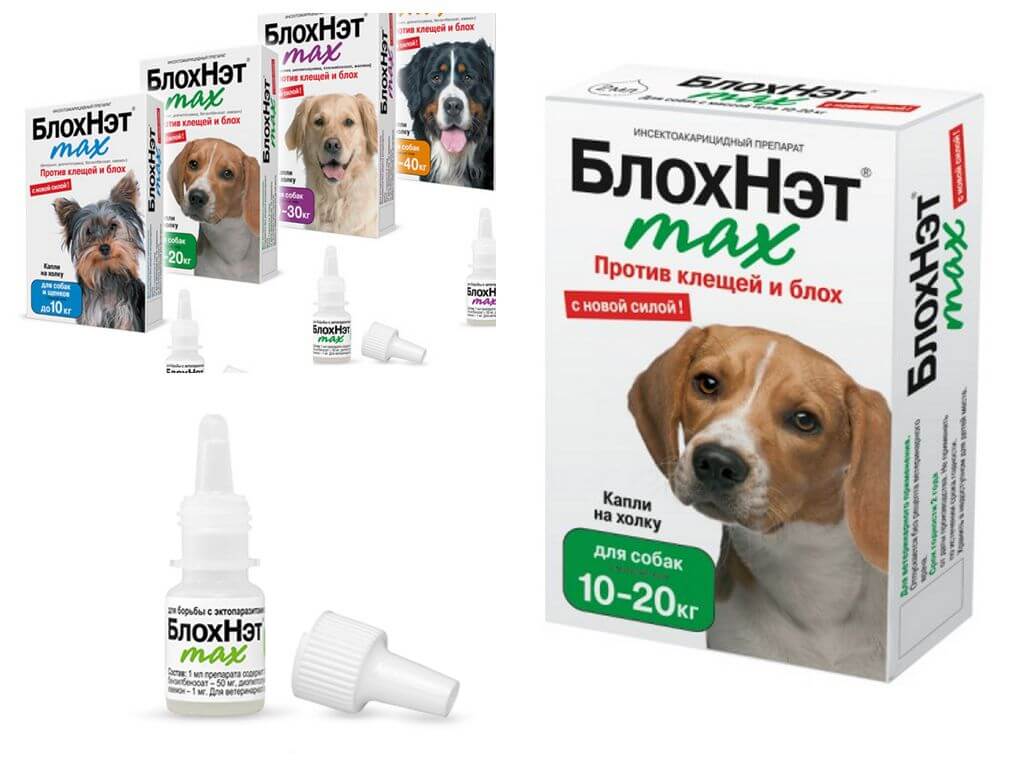 - капли Блохнэт max – средство для уничтожения насекомых на всех стадиях развития.