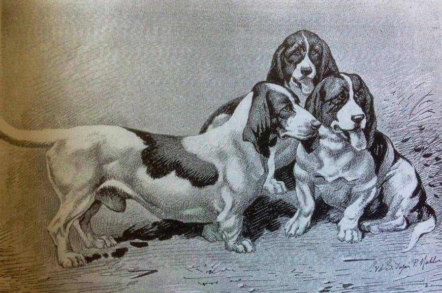 «…Современные бассеты вряд ли могут быть названы потомками собак этой же породы времен дю Фулью и Селинкура (XIV век) и произошли сравнительно недавно от обыкновенных гончих, имевших уродливые конечности вследствие английской болезни. Укорочение задних конечностей и искривление передних у молодых собак наблюдается не особенно редко…»