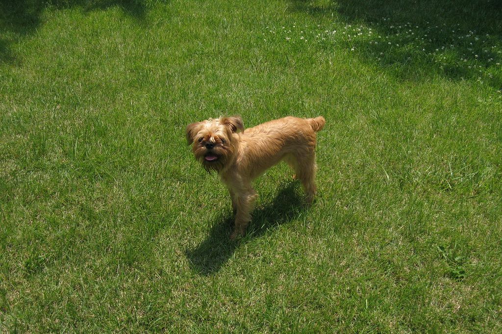 Шерсть довольно жесткая, причем такое качество шерсти у всех представителей гриффинов. Брюссельский гриффон собака имеет строго рыжий окрас. Именно это качество отличает ее от всех остальных собратьев.