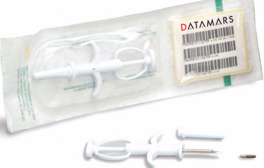 Маркировать питомцев можно с помощью микрочипов. Это метка радиочастотной идентификации (или RFID-метка), которая хранит уникальный номер животного и с помощью специальной антенны может передать его на считыватель, поднесенный на определенное расстояние. Чип вместе с антенной упаковывается в специальную капсулу из биосовместимого стекла с покрытием, исключающим аллергические реакции, отторжение или перемещение под кожей животного.