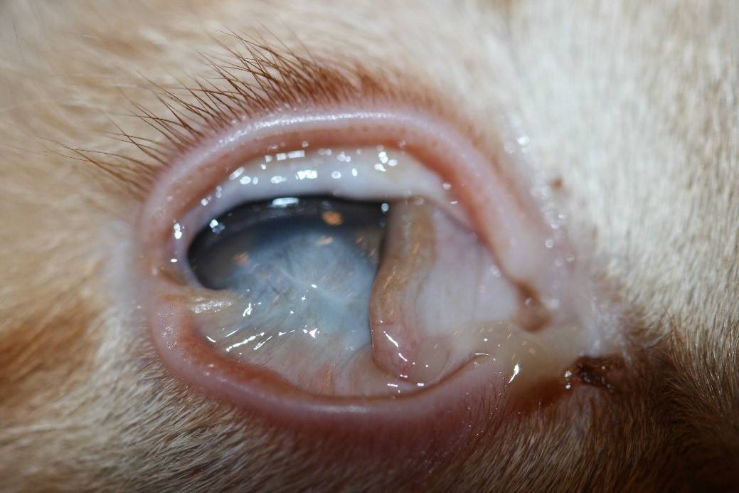 Врожденные дефекты роговицы и конъюнктивы. У собак, в частности, нередко выявляют дермоиды. Так называются кистозные доброкачественные образования, внутри которых содержится эпителиальная масса, кожное сало, волосы. Бывает, что на ощупь они твердые, но чаще выявляют упругие или «пластичные» новообразования.