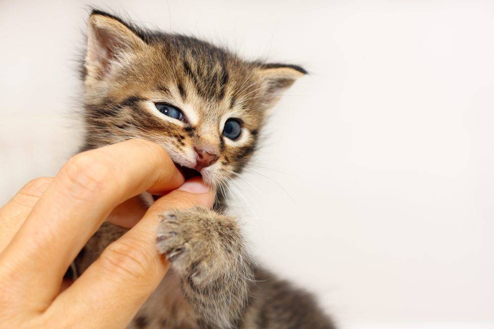 Котята появляются на свет совершенно беззубыми, зубки начинают «лезть» только начиная с двухнедельного возраста. В этот период котята — совсем как маленькие ребятишки — очень беспокойные и пытаются чесать десны обо что угодно — начиная с собственных лап и пушистых хвостиков однопометных братьев-сестричек и заканчивая краями корзинки или лежанки.