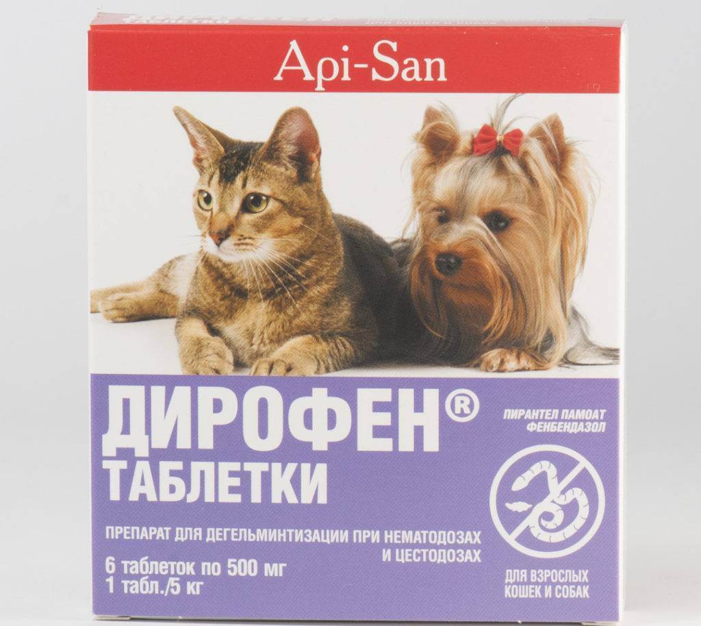 - «Дирофен» – таблетки для перорального приема, дозировка – 1 шт. на 1 кг веса животного;