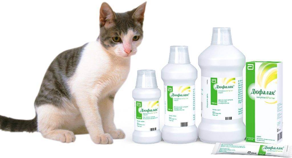 При терапевтическом лечении прописывают средства, способствующие размягчению каловых масс. Для этого питомцу можно добавлять в еду Дюфалак или Лактусан. Это мягкие слабительные для кошки.