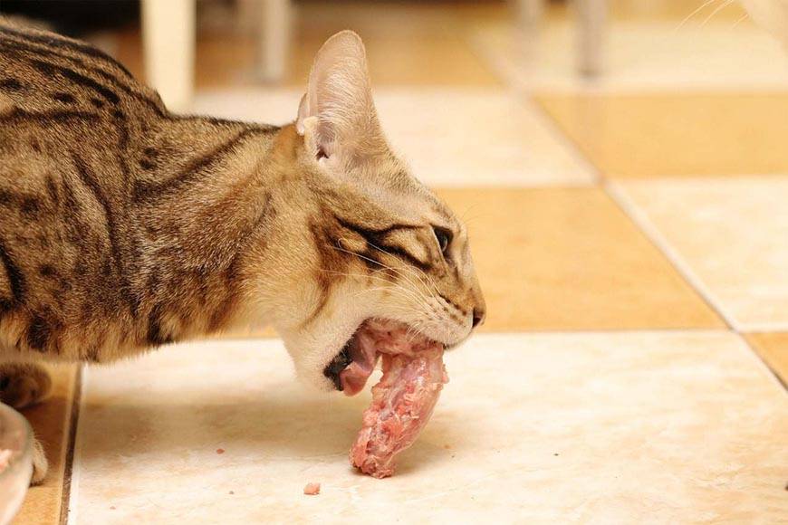 Ветеринары не рекомендуют кормить домашних животных кусочками мяса или рыбы с костями. Во время еды кошки обычно проглатывают тонкие небольшие кости целиком, что грозит травмами глотки и пищевода.